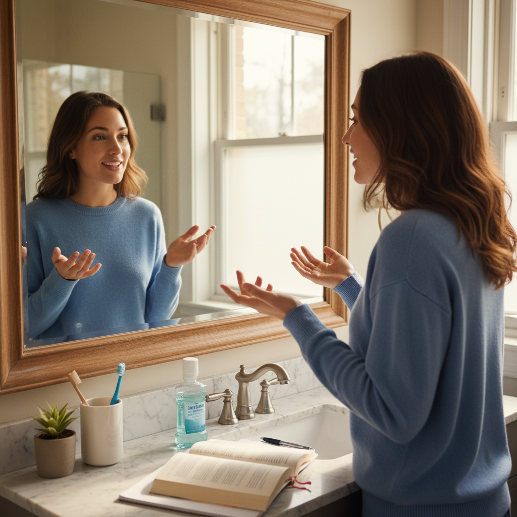 - Mirror Talk: Describe Your Day Stand in front of a mirror and simply describe what you’re doing, what you see, or how you feel. Narrate your morning routine: “I am brushing my teeth. The water is cold. I need to get dressed now.” You can also role-play conversations, perhaps practicing what you’d say in a job interview or ordering food. The mirror helps you observe your facial expressions and body language.